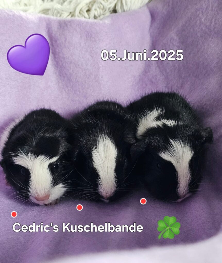 Der zweite Wurf von Milchschnitte brachte uns ein prächtiges Bübchen in schwarz – weiß mit einem Geburtsgewicht von 109 gr. Der kleine Mann ist schön kompakt und hat mächtig viel Fell. Zwei weitere Bilder unten…