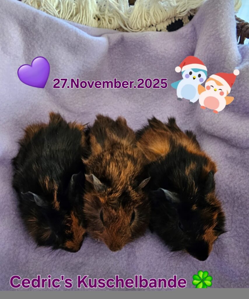 ❤️19.März.2026: Die ersten Babys sind gepurzelt!!! Unsere ersten Babys sind heute morgen um 7:02 Uhr geboren! 🤗 Drei Rosettchen, ein Mädchen in weiß und zwei Bübchen in buff, die Californiazeichnung ist schon deutlich zu erkennen. Mama Irmi und den Kleinen geht es sehr gut.