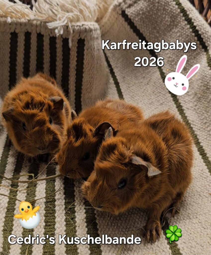 03.April.2026: Karfreitagbabys, endlich ist er da unser 2. Rosettenwurf! Amina hat drei süße Babys geboren. Wir freuen uns riesig über diese süßen „Osterhäschen“ 🤗